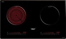 - Bếp điện từ đôi: là bếp có 2 vùng nấu, một bên là vùng nấu bếp từ, một bên là vùng nấu hồng ngoại, tiện lợi khi sử dụng cho 2 món ăn cùng lúc, cho gia đình 2-5 người