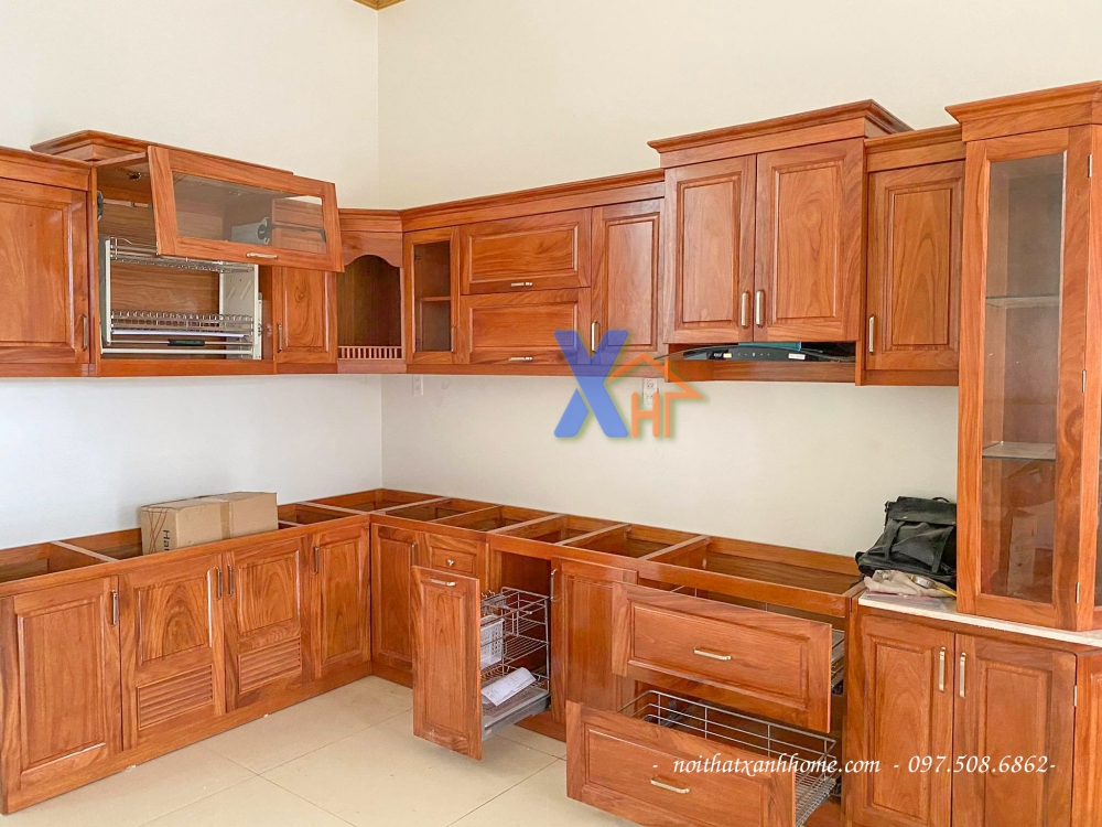 Thi công tủ bếp gỗ Tần Bì thực tế