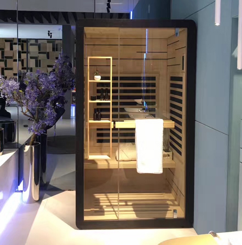 VS-96115I là phòng xông hơi khô được làm từ gỗ Hemlock cao cấp với màu sắc bắt mắt, vân gỗ thẳng đều và đẹp, khả năng chống ăn mòn rất tốt. Thiết kế bề mặt bên ngoài phủ lớp gỗ Veneer đen sang trọng, làm nổi bật sự hiện đại của phòng xông hơi bằng gỗ. Hệ thống lò sưởi được đặt 4 mặt xung quanh phòng