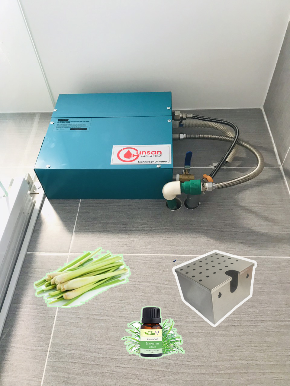 Máy xông hơi được sử dụng cùng phòng xông hơi ướt là máy xông hơi ướt Gunsan, giá đã bao gồm phụ kiện tặng kèm như hộp đựng hương liệu, tinh dầu xông hơi. Tuy nhiên, để có trải nghiệm lâu dài bạn nên sử dụng các loại lá, củ tự nhiên để mùi hương được tươi mới, dễ chịu hơn.
