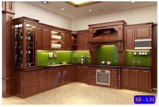 Tủ bếp biệt thự gỗ Xoan Đào chữ L XĐ-L31