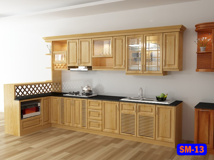 >> Tủ bếp chung cư gỗ Sồi Mỹ chữ L SM-L11 đa dạng mẫu mã