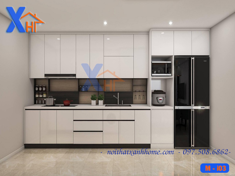 >> Thiết kế tủ bếp chung cư gỗ Melamine chữ I M-I11 hiện đại