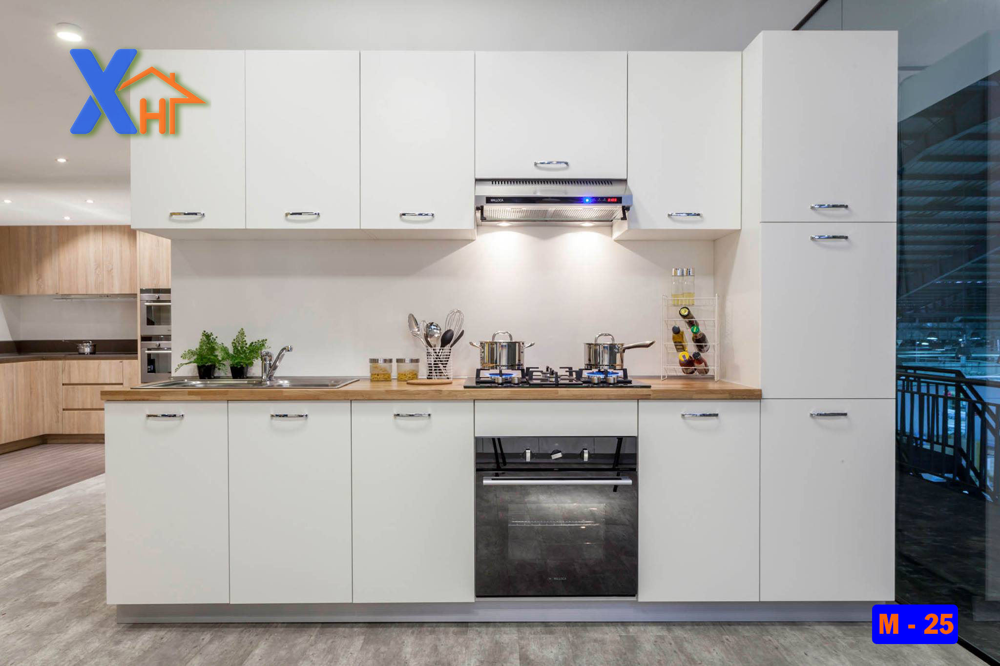 - Tủ bếp nhà phố gỗ Melamine chữ L M-L21 đa dạng, thiết kế đẹp